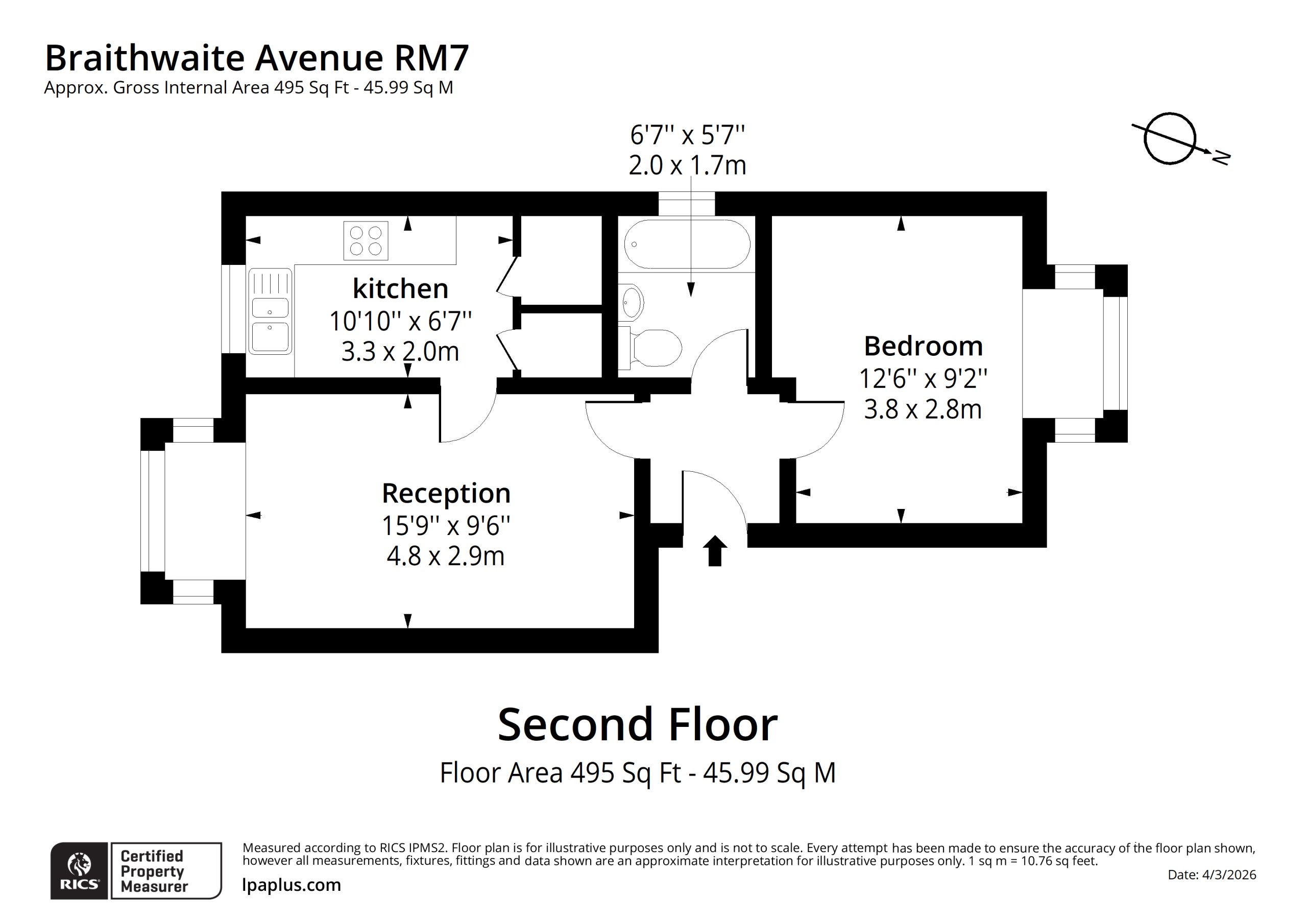 Kitchen: 10’102 x 6’7” (3.3 x 2.0m)